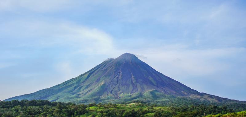 Volcán Arenal se erige como un prodigio natural deslumbrante que ofrece todo un espectáculo para la vista. Solía ser uno de los más activos del país y se distingue a nivel mundial por ser uno de los volcanes cónicos más perfectos. En sus alrededores, pueden visitarse el Parque Nacional Volcán Arenal y otras bellezas naturales, como el Lago Arenal y la Catarata La Fortuna.